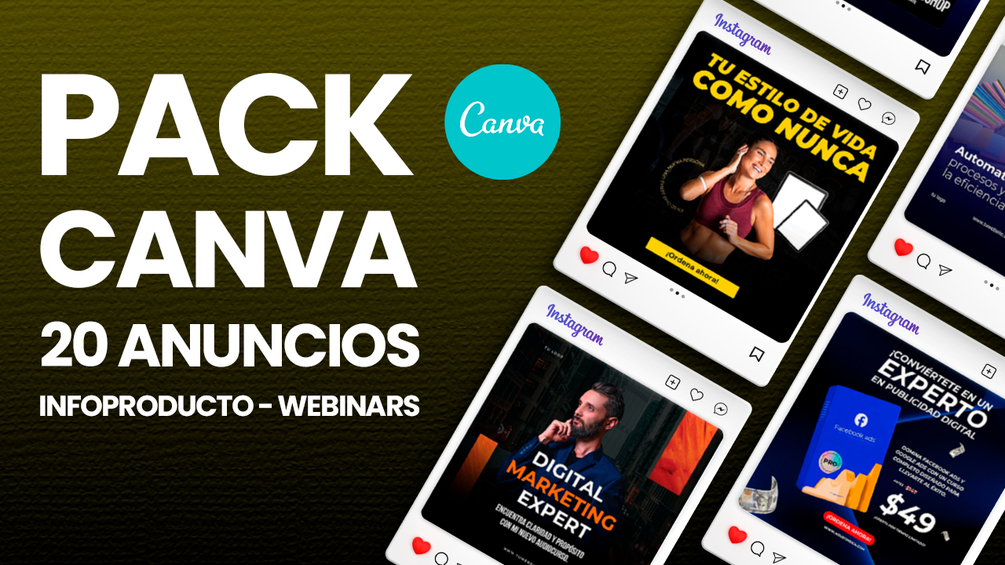 Pack 20 Anuncios Ganadores Canva - Infoproductos, Webinars
